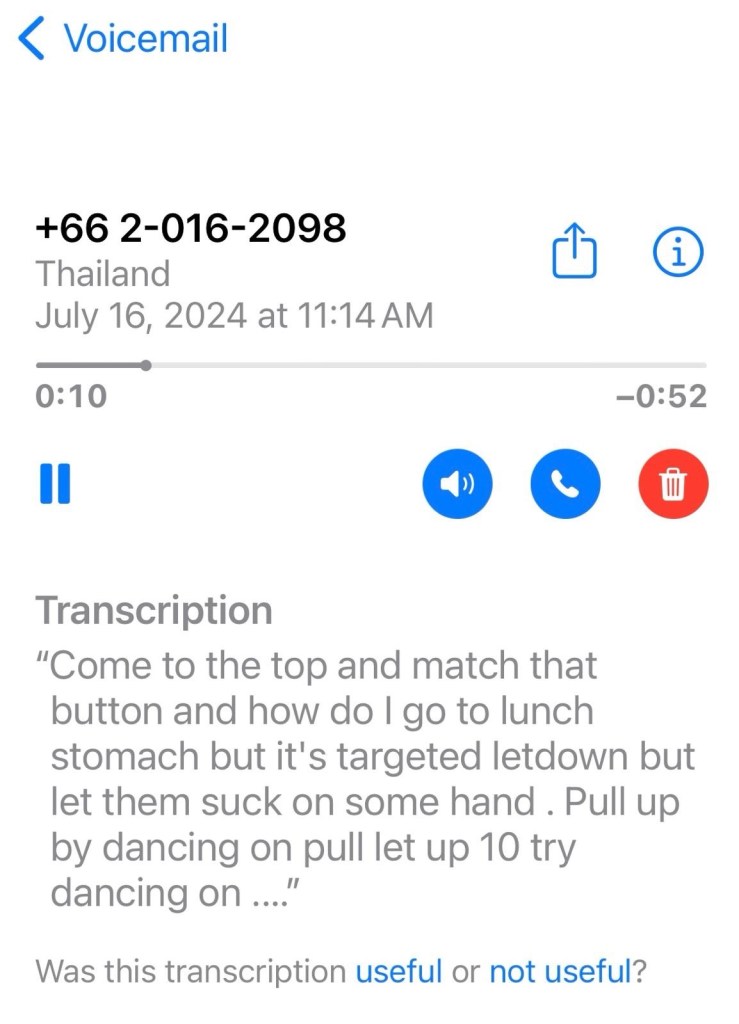 Telemarketers. Nobody’s favorites. But I must admit that the voicemail transcriptions of messages we get here in Thailand are definitely amusing! And, as the above attests, some things definitely get lost in translation!